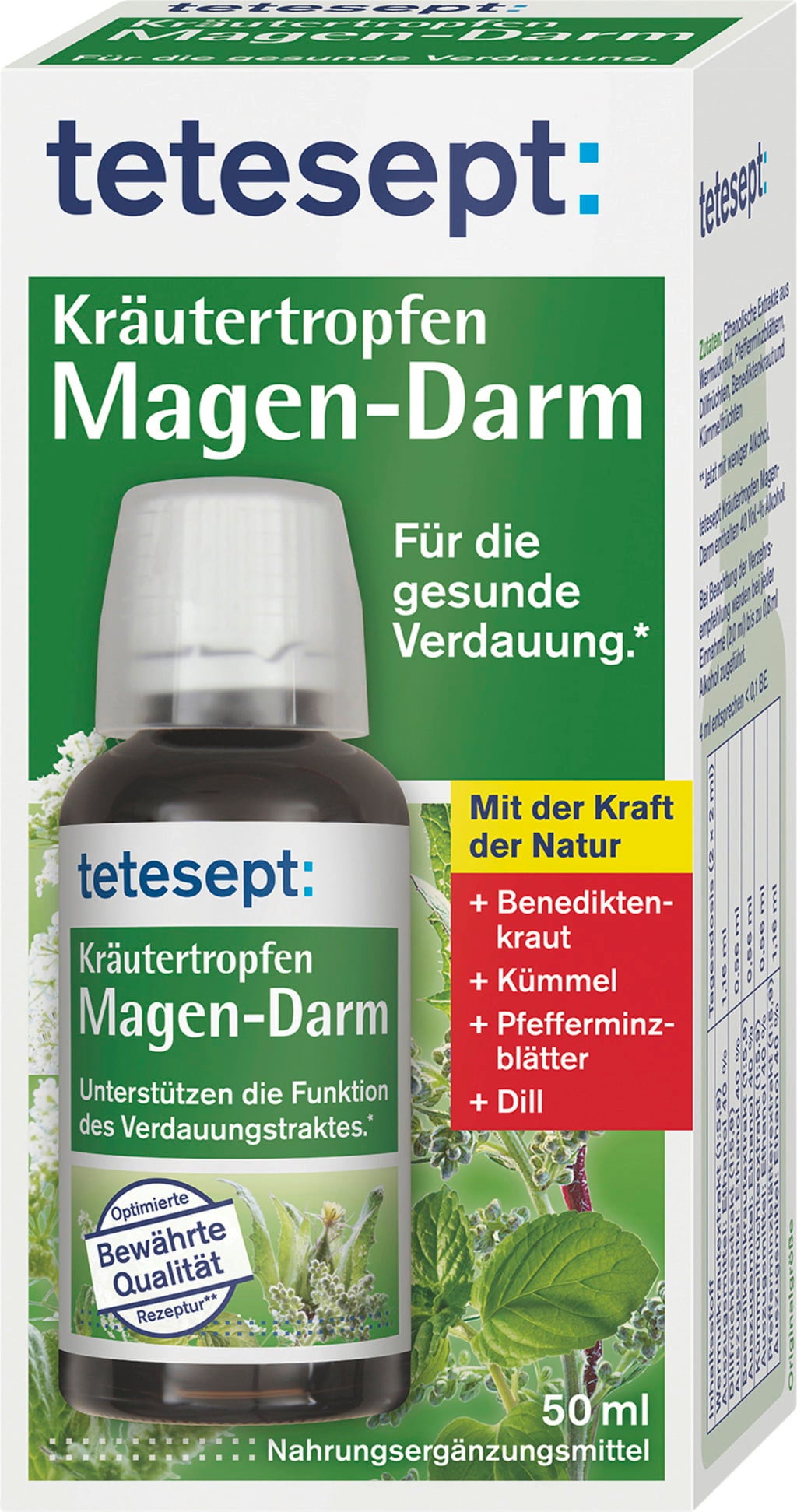 Тези билкови капки от tetesept са обогатени с алкохолни екстракти от бенедиктен пелин, пелин, кимион, мента и копър.