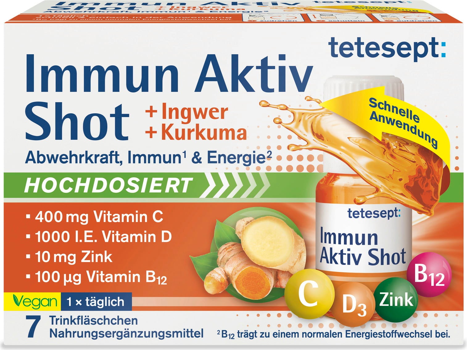 Immun Aktiv Shots от tetesept съдържат джинджифил, куркума и високодозиран витамин C. Веган формулата включва също витамин B12, витамин D и цинк. Идеални като подкрепа в ежедневието и във взискателни периоди.