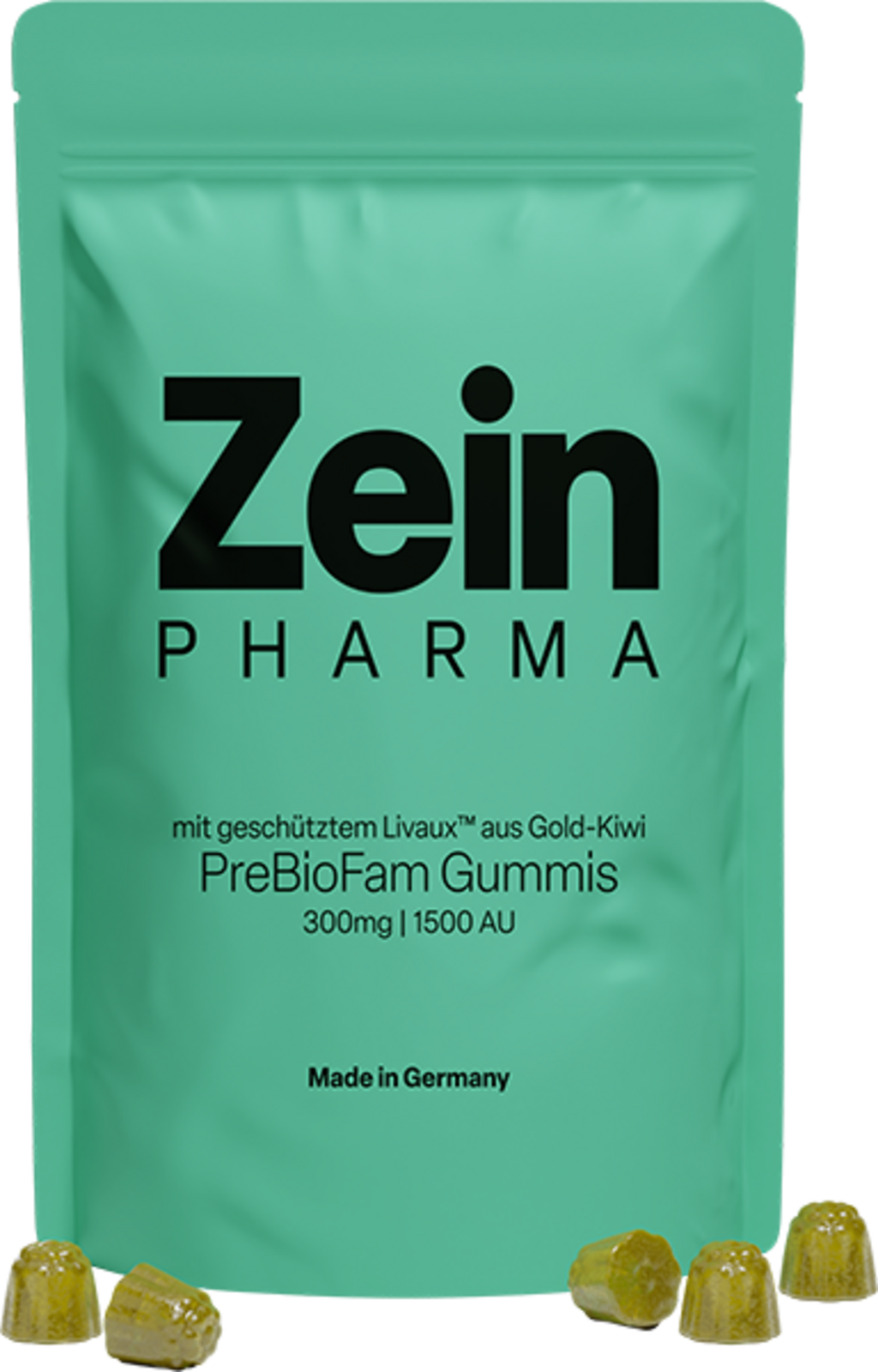 Плодови желирани бонбони с екстракт от златно киви за деца на възраст от 4 години нагоре, както и за възрастни. Произведени с патентования плоден прах Livaux™ от новозеландско златно киви и осигуряващи 1500 единици актинидин на желиран бонбон. Веган, без желатин и без изкуствени оцветители и аромати.